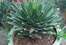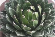 皇后龙舌兰是天门冬科、龙舌兰属多年生草本多浆植物。无主茎,叶丛生,莲座状,株幅40厘米。叶较多,先端较细,三棱形,腹面扁平,背面圆形呈微龙骨凸起,长10-30厘米,宽2.5-7.5厘米,厚肉质硬,…全部>>