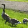 灰雁:体长70-90厘米,翼展147-182厘米,体重2.5-4千克,寿命17年。体大而肥胖。嘴、脚肉色,上体灰褐色,下体污白色,飞行时双翼拍打用力,振翅频率高。脖子较长。腿位于身体的中心支点,…全部>>
