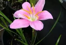 小韭兰学名韭菜莲又名风雨花、菖蒲莲、红玉帘和旱水仙,多年生草本,鳞茎卵球形,基生叶常数枚簇生,线形,扁平,花单生于花茎顶端,下有佛焰苞状总苞,花玫瑰红色或粉红色,蒴果近球形,种子黑色,花期夏秋。韭莲…全部>>