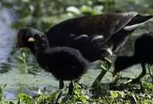 黑水鸡:是鹤形目、秧鸡科的鸟类,共有12个亚种。中型涉禽,体长24-35厘米。嘴长度适中,鼻孔狭长;头具额甲,后缘圆钝;嘴和额甲色彩鲜艳。翅圆形,第2枚初级飞羽最长,或第2枚和第3枚初级飞羽等长,…全部>>