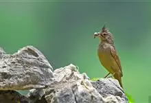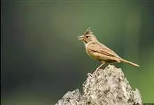 凤头鹀:属小型鸣禽,体重21-31克,体长134-175毫米。以头顶的细长羽冠为特征,雄鸟全身几乎均为黑色具蓝色光泽,两翅和尾以及尾上覆羽栗红色。雌鸟具短的褐色羽冠,上体暗橄榄褐色,…全部>>