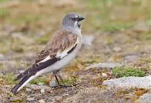 白斑翅雪雀:属典型的高原鸟类,共有7个亚种,体重30-34克,体长142-169毫米,较雪雀属中其他种体型稍大;雄鸟头灰,颏黑,翕和肩富于褐色;翼大部白色;除一对中央尾羽黑色外其余均为白色而具黑色羽端,…全部>>