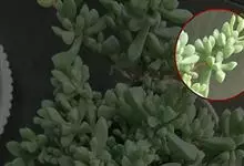 薄雪万年草别名矶小松,景天科景天属多年生草本植物,其细小的蓝绿色棒状叶片环绕生长于茎端,茎匍匐生长接触地面易着生不定根,整片生长郁郁葱葱犹如蓝色地毯,绿化效果极为秀美。原产西班牙,…全部>>
