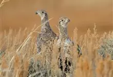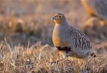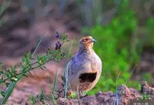 斑翅山鹑,俗称沙半鸡、沙斑鸡,体长250-310毫米,是体形略小的灰褐色鹑类。雄鸟的脸、喉中部及腹部桔黄色,腹中部有一倒“U“字形黑色斑块。与灰山鹑的区别在于胸为黑色而非栗色,喉部桔黄色延至腹部,…全部>>