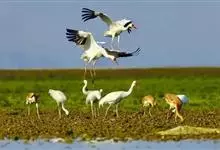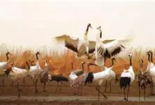丹顶鹤:是鹤科、鹤属的一种大型涉禽,体长120-160厘米。颈、脚较长,通体大多白色,头顶鲜红色,喉和颈黑色,耳至头枕白色,脚黑色,站立时颈、尾部飞羽和脚黑色,头顶红色,…全部>>