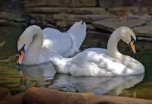 疣鼻天鹅:是鸟纲、鸭科、天鹅属的一种大型的游禽,体长1.2-1.5米,体重6.75-10千克。脖颈细长,前额有一块瘤疣的突起,因此得名。全身羽毛洁白。在水中游泳时,颈部弯曲而略似“S“形。…全部>>