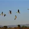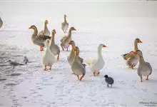 灰雁:体长70-90厘米,翼展147-182厘米,体重2.5-4千克,寿命17年。体大而肥胖。嘴、脚肉色,上体灰褐色,下体污白色,飞行时双翼拍打用力,振翅频率高。脖子较长。腿位于身体的中心支点,…全部>>