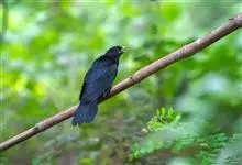 噪鹃是鹃形目杜鹃科噪鹃属鸟类,又名栽秧雀、哥好雀。雄鸟通体乌黑泛幽蓝色金属光泽,下体泛蓝绿色;虹膜血红色,啄淡土黄色,基部较暗,脚蓝灰色。雌鸟上体、翼和尾为深褐色,…全部>>