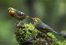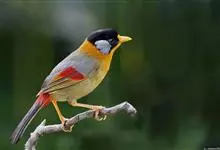 银耳相思鸟小型鸟类,体长14~18厘米。头顶黑色,耳羽银灰色,前额橙黄色;外侧飞羽橙黄色,基部朱红色,极为鲜艳、醒目。尾圆形,尾上、尾下覆羽朱红色,尾暗灰褐色,外侧尾羽橙黄色,其余上体橄榄绿或橄榄黄色。…全部>>