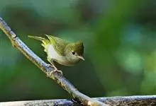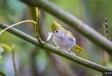 白腹凤鹛是绿鹃科、绿凤鹛属的小型鸟类,体长10-12厘米。上体从头到尾黄绿色,有短的羽冠,头顶微具黑色羽轴纹;眼先、眼周,耳羽和下体灰白色,尾下覆羽黄色。虹膜褐色或红褐色,上嘴浅褐色或肉褐色,…全部>>