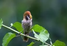 点胸鸦雀是莺科、鸦雀属小型鸟类,体长18-21厘米。头顶至枕橙棕色,嘴橙黄色、短而粗厚,脸皮黄色,耳覆羽和颊后部黑色,眼圈白色。上体棕褐色。颏黑色,其余下体淡皮黄白色,喉和上胸具黑色矢状斑。…全部>>