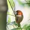 点胸鸦雀是莺科、鸦雀属小型鸟类,体长18-21厘米。头顶至枕橙棕色,嘴橙黄色、短而粗厚,脸皮黄色,耳覆羽和颊后部黑色,眼圈白色。上体棕褐色。颏黑色,其余下体淡皮黄白色,喉和上胸具黑色矢状斑。…全部>>