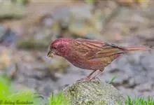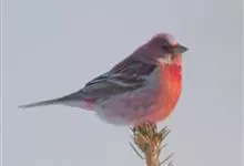 藏朱雀:全长约17-18厘米。雄鸟头部深红色具光辉,喉部暗红色具白色点斑;背部灰白色,各羽具玫瑰红色羽端,形成许多斑纹;腰部淡玫瑰红色;翅暗褐色,沾灰白,羽端沾玫瑰红或灰白色;尾暗棕色,端缘玫瑰红色…全部>>