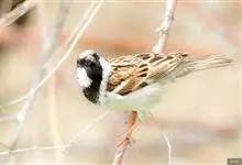 家麻雀:共有13个亚种。是小型鸟类,体长14-16厘米。背栗红色具黑色纵纹,两侧具皮黄色纵纹;颏、喉和上胸黑色,脸颊白色,其余下体白色,翅上具白色带斑。雄鸟与树麻雀的区别在顶冠及尾上覆羽灰色,耳无黑…全部>>