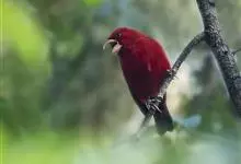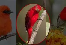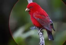 血雀雀科朱雀属鸟类,体重36-49克;体长155-182毫米。雄鸟除眼先、翼与尾为黑色外,通体为鲜红色;嘴鲜黄;雌鸟暗橄榄绿色,羽端较淡或带黄色;腰鲜黄;嘴较暗。虹膜褐色;嘴黄色;腿和脚褐色。…全部>>