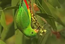 短尾鹦鹉是典型的攀禽,体形小,翅长在90毫米左右;尾较翅短;嘴较细削,其厚度不及嘴峰长度;腰下有朱红色块斑;雄鸟喉部有蓝色块斑。鸟喙强劲有力,喙钩曲,上颌具有可活动关节,喙基部具有腊膜。肌肉质舌厚。…全部>>