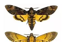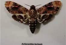 鬼脸天蛾,是鳞翅目天蛾科面形天蛾属动物。成虫翅展100~125毫米,体黑褐色;胸背有骷髅形斑纹;卵圆球形,直径约2毫米,淡黄绿色,表面光滑;老熟幼虫体长70~90毫米,蛹体长约56毫米;前翅为褐色,…全部>>