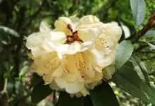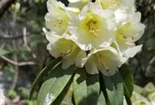 问客杜鹃:灌木,高1-3米。幼枝细长,密被腺体状鳞片。叶革质,椭圆形,卵状披针形或长圆形,上面被鳞片,幼叶中脉被毛或无毛,下面灰绿色。花序顶生,3-4花,伞形着生或短总状;花萼长环状或波状浅裂;花冠…全部>>