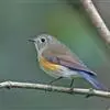 红胁蓝尾鸲俗名:蓝点冈子、蓝尾巴根子、蓝尾杰、蓝尾欧鸲。体型略小而喉白的鸲。特征为橘黄色两胁与白色腹部及臀成对比。雄鸟上体蓝色,眉纹白;亚成鸟及雌鸟褐色,尾蓝。…全部>>