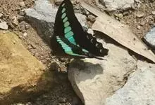 青带凤蝶Graphium sarpedon ,又名青凤蝶,是最普遍的中型凤蝶,飞行速度很快。青带凤蝶的翅膀中央有许多浅蓝色的斑点,很整齐地排列成一条直线。这些斑点由上而下逐渐变大,就像一条青色的带子。全部>>