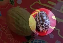 黑星宝螺是宝螺科宝螺属的软体动物。贝壳较大而重,呈卵圆形,圆鼓。长9-10.6厘米,宽约6.8厘米,高约5.3厘米。壳质坚厚,极光滑,有瓷光,色泽呈白色或淡黄色,上面布有大小不同的黑褐色斑点,…全部>>