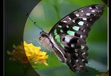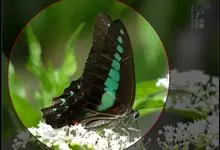 青带凤蝶Graphium sarpedon ,又名青凤蝶,是最普遍的中型凤蝶,飞行速度很快。青带凤蝶的翅膀中央有许多浅蓝色的斑点,很整齐地排列成一条直线。这些斑点由上而下逐渐变大,就像一条青色的带子。全部>>