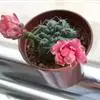 绯花玉 Speg.)是仙人掌科、裸萼球属多肉植物,植株呈扁球形,表皮墨绿色,刺针状,每个刺座有5枚灰色周刺,花生于球体顶端,夏季开花,花色有白、粉红、深红等。果实纺锤形,深灰绿色,种子黑色。…全部>>