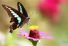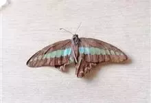 青带凤蝶Graphium sarpedon ,又名青凤蝶,是最普遍的中型凤蝶,飞行速度很快。青带凤蝶的翅膀中央有许多浅蓝色的斑点,很整齐地排列成一条直线。这些斑点由上而下逐渐变大,就像一条青色的带子。全部>>