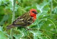 普通朱雀是雀形目雀科朱雀属鸟类,又名红朱雀、马料、青麻料。雄鸟上体红色,下体淡红色;头部、喉部、胸部及腰部亮红色;背部褐色染红色;两翼及尾黑褐色,羽缘染红色。雌鸟上体橄榄褐色,下体近白色,…全部>>