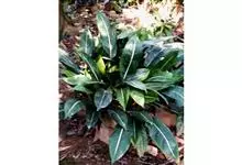 彩叶万年青 Schott)是天南星科、花叶万年青属较矮小亚灌木。茎粗壮,上升,上部直立。叶柄具鞘,绿色,具白色条状斑纹;叶片长圆形至卵状长圆形,中肋宽厚,侧脉表面下凹,花序柄短。佛焰苞骤尖,绿色或白…全部>>