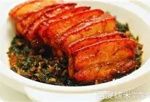梅菜扣肉,汉族传统名菜,属客家菜 。制作材料有五花肉、梅菜、葱白、姜片等。全部>>