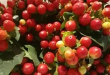 红果金丝桃,园艺栽培品种,属于被子植物门木兰纲金虎尾目金丝桃科金丝桃属。学名:Hypericum × inodorum ‘Excellent Flair’常绿灌木,高1.2米。单叶对生,无柄,椭圆形,…全部>>