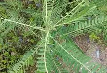 田菁 Pers.)是豆科田菁属的一年生草本。株高2~3.5米;茎绿色或褐红色,微被白粉;小叶线状长圆形,先端钝或平截,两侧不对称;花枝疏生白色绢毛,与叶轴及花序轴均无皮刺;荚果细长圆柱形;种子有光泽,…全部>>