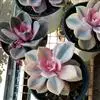 紫珍珠是景天科石莲花属的多年生肉质草本植物。植株中小型;叶片肉质,匙形,呈莲座状紧密排列;叶片粉紫色,叶缘呈粉白色,光照充足时颜色亮丽,不足时叶色会呈现深绿色或灰绿色,叶面光滑,被轻微白粉,…全部>>