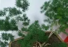 蓬莱松是天门冬科、天门冬属多年生丛生草本植物。宿存,圆柱形肉质根,纵截面为绿色和表面灰色。植株高可达3米。茎呈圆柱形或近四边形,底部木质化,具有灰色或灰褐色。幼嫩的茎在每个节上都被紫绿色鳞片包,…全部>>