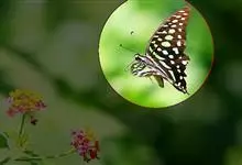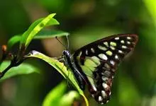 青带凤蝶Graphium sarpedon ,又名青凤蝶,是最普遍的中型凤蝶,飞行速度很快。青带凤蝶的翅膀中央有许多浅蓝色的斑点,很整齐地排列成一条直线。这些斑点由上而下逐渐变大,就像一条青色的带子。全部>>