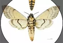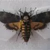 鬼脸天蛾,是鳞翅目天蛾科面形天蛾属动物。成虫翅展100~125毫米,体黑褐色;胸背有骷髅形斑纹;卵圆球形,直径约2毫米,淡黄绿色,表面光滑;老熟幼虫体长70~90毫米,蛹体长约56毫米;前翅为褐色,…全部>>