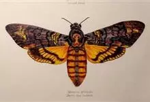 鬼脸天蛾,是鳞翅目天蛾科面形天蛾属动物。成虫翅展100~125毫米,体黑褐色;胸背有骷髅形斑纹;卵圆球形,直径约2毫米,淡黄绿色,表面光滑;老熟幼虫体长70~90毫米,蛹体长约56毫米;前翅为褐色,…全部>>