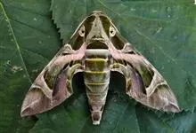夹竹桃天蛾是鳞翅目天蛾科昆虫。又称夹竹桃白腰天蛾、巴纹天蛾。成虫呈青黑色,四翅正反面都以橄榄色为主调,而前翅中部则略显粉紫色;前翅基部灰白色,中央有1个黑点,…全部>>