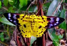豹尺蛾,Dysphania militaris Linnaeus,是鳞翅目尺蛾科豹尺蛾属的一种豹尺蛾种动物,寄主为竹节树。幼虫取食寄主叶片,…全部>>
