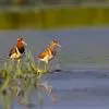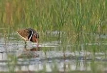 彩鹬是彩鹬科、彩鹬属下的一种小型涉禽,体长25厘米左右。嘴细长,尖端向下弯曲,雄鸟头具淡黄色中央纹。眼周黄色,并向后延伸成一柄状带。背具白色横斑,两侧具黄色纵带。胸侧至背有一白色宽带。雌鸟喉和前颈粟色。…全部>>