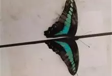 青带凤蝶Graphium sarpedon ,又名青凤蝶,是最普遍的中型凤蝶,飞行速度很快。青带凤蝶的翅膀中央有许多浅蓝色的斑点,很整齐地排列成一条直线。这些斑点由上而下逐渐变大,就像一条青色的带子。全部>>