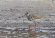 红脚鹬:体长28厘米,上体褐灰,下体白色,胸具褐色纵纹。飞行时腰部白色明显,次级飞羽具明显白色外缘。尾上具黑白色细斑。虹膜黑褐色,嘴长直而尖,基部橙红色,尖端黑褐色。脚较细长,亮橙红色,…全部>>