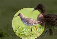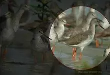 红脚鹬:体长28厘米,上体褐灰,下体白色,胸具褐色纵纹。飞行时腰部白色明显,次级飞羽具明显白色外缘。尾上具黑白色细斑。虹膜黑褐色,嘴长直而尖,基部橙红色,尖端黑褐色。脚较细长,亮橙红色,…全部>>