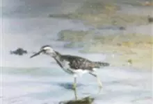 泽鹬:小型涉禽,体长19-26厘米。嘴长,相当纤细,直而尖。颜色为黑色,基部绿灰色,脚细长,暗灰绿色或黄绿色。夏季上体灰褐色具黑色斑,腰白色并向下呈楔形延伸。下体白色,颈、胸具细的黑色纵纹。…全部>>