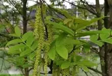 青钱柳 Il jinsk.),胡桃科青钱柳属的落叶乔木植物。枝裸芽具柄,密锈褐色腺鳞;枝条髓部薄片状分隔;叶奇数羽状复叶,基部歪斜,宽楔形或近圆,具锐锯齿;花雌雄同株;雌、雄花序均葇荑状;果具短柄,…全部>>