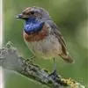 蓝点颏亦称“蓝喉歌鸲”,通称蓝靛颏儿。身体大小和麻雀相似,体长12-13厘米,体重17-18克。头部、上体主要为土褐色。眉纹白色。尾羽黑褐色,基部栗红色。颏部、喉部辉蓝色,下面有黑色横纹。下体白色。…全部>>