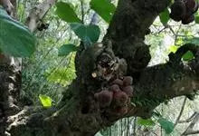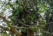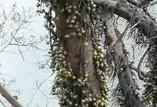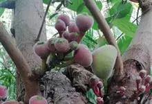 大果榕是桑科榕属的小乔木,株高可达10米;幼枝被柔毛;叶互生,宽卵状心形或近圆形;雄花无梗、匙形、花丝长,雌花生于雌株榕果内,子房白色;榕果簇生于树干基部或老茎短枝上、扁球形或陀螺形,…全部>>