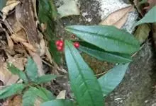 东方紫金牛是报春花科、紫金牛属植物。灌木,高达2米,通常无毛;叶厚,新鲜时略肉质,倒披针形或倒卵形,顶端钝和有时短渐尖,基部楔形,长6-12厘米,宽3-5厘米,全缘,…全部>>