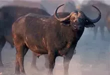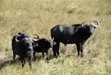 非洲野水牛:共有5个亚种。头体长2.1-3.4米,身高1-1.7米,体重300-900千克。胸膛宽阔,四肢粗壮,头大角长,雄性的角从头部向外和向下扩散,在一些雄性中,角通过覆盖头部的大盾连接。头顶的…全部>>